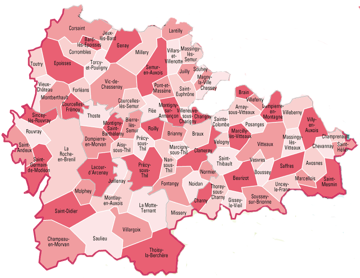 soit un total de 21337 habitants en 1999 et 89 communes représentant 22465 habitants en 2013